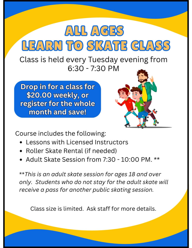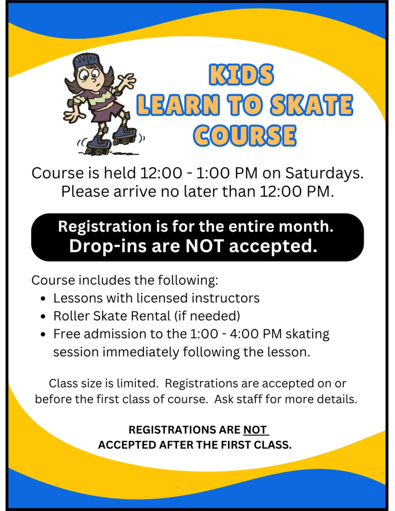 March 2026 Kids Learn to Skate Course on Saturdays has reached capacity.We are no longer accepting registrations.Please consider registering for our April 2026 Course. Class Registration Form January / February / March 2026 Class Registration Form April / May / June 2026